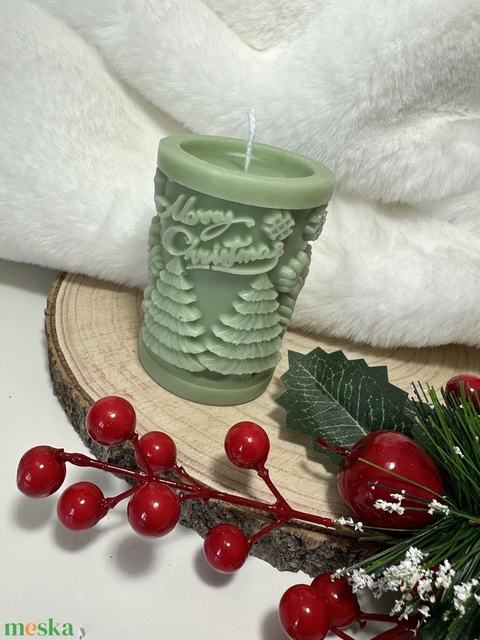 Karácsonyi Henger Gyertya - Zöld