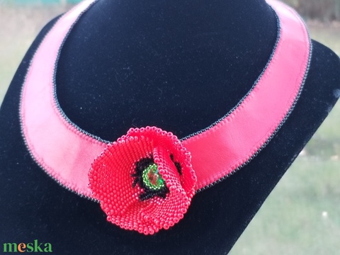 - Anyaga: cseh kásagyöngy, rivoli, japán kásagyöngy, japán delica, borjúbőr, fekete delfinkapocs