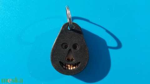 Fekete, "Bankrabló Busó" kulcstartó. Gumírozott felület, gravírozott alappal. Vidámaknak jár, búsulóknak vidító ajándék.