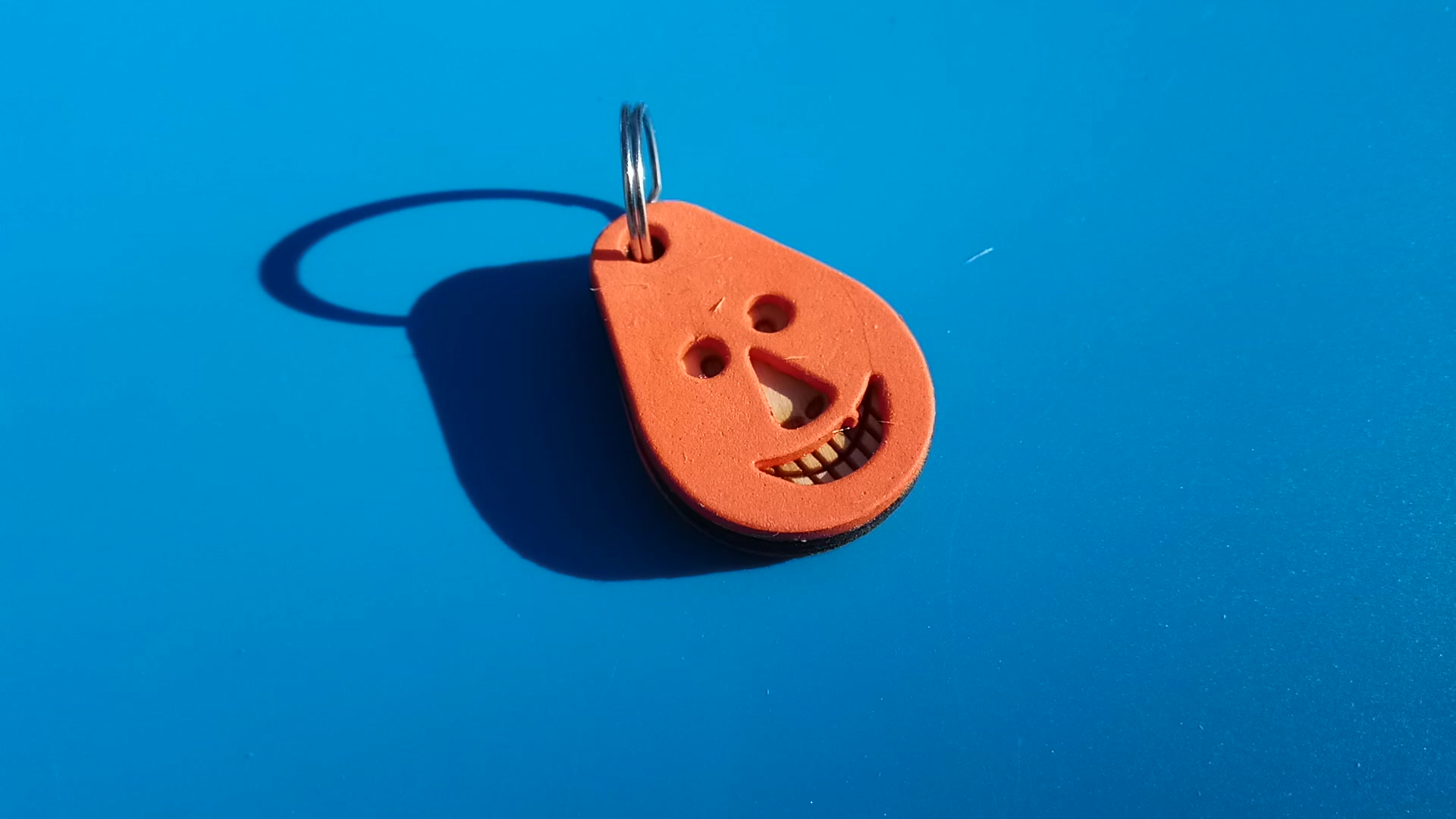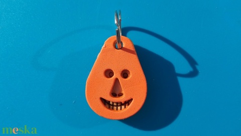 Narancssárga, "Vidám Busó" kulcstartó. Gumírozott felület gravírozott alappal. Vidámaknak jár, búsulóknak vidító ajándék