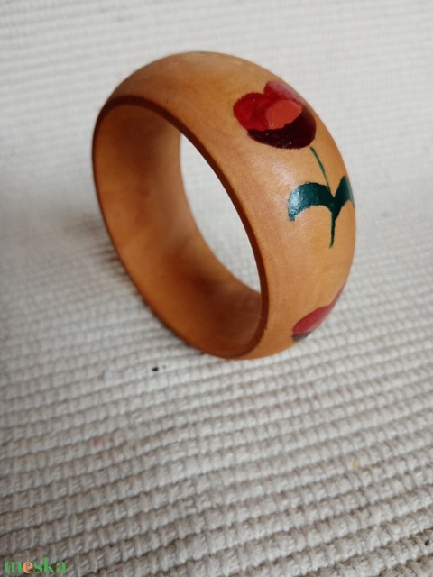 Matyó virágos fakarkötő, matyós viselet, kézzel festett matyó karkötő