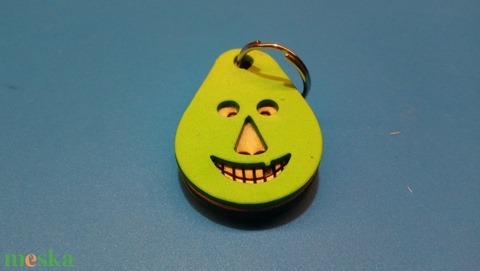 Zöld, Vidám Busó kulcstartó. Gumírozott felület, gravírozott alappal. Vidámaknak jár, búsulóknak vidító ajándék.