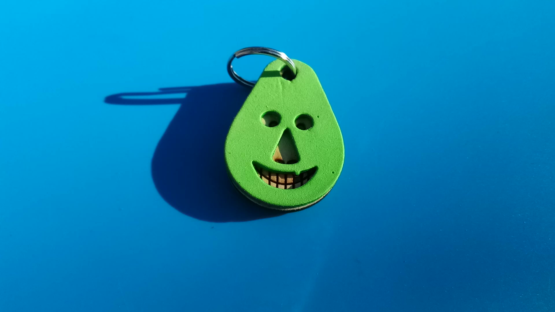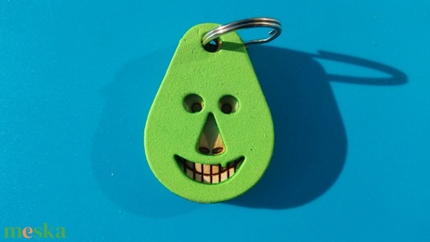 Zöld, "Vidám Busó" kulcstartó. Gumírozott felület, gravírozott alappal. Vidámaknak jár, búsulóknak vidító ajándék.