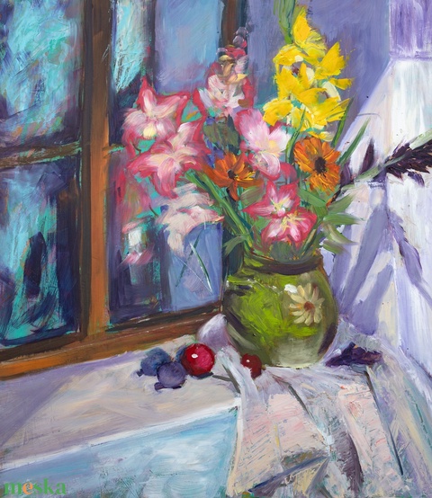 Ablakban csendélet olajfestmény