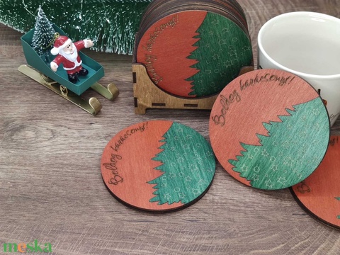 Karácsonyi poháralátét - "Boldog karácsonyt!" felirattal