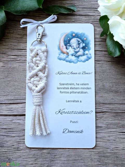 Keresztszülő felkérő ajándék, makramé kulcstartó - kisfiú