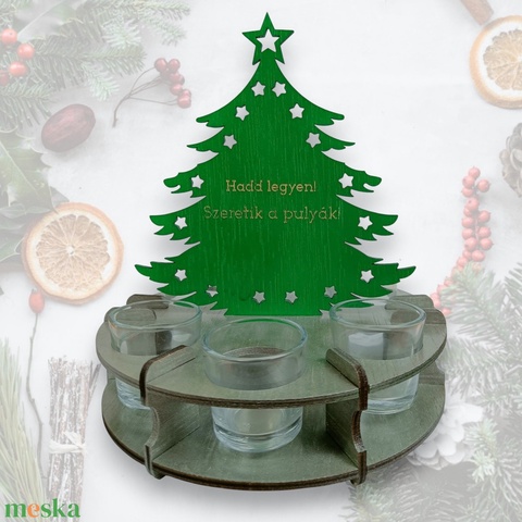 Karácsonyi Ital Kínáló, 6 Pálinkás Pohárral: Hadd legyen, szeretik a pulyák! (20x20x22 cm)