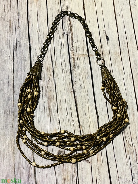 lánc, bronz szerelék, bronz köztes, kásagyöngy