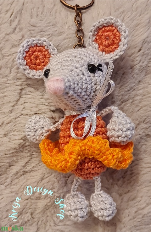 Kézműves horgolt kabalafigurás kulcstartó - Mini egér (Napsugár)