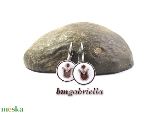 Tulipán lángocska - tűzzománc fülbevaló nemesacél foglalatban