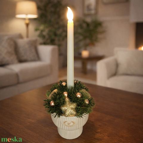 Ünnepi asztaldísz ledes gyertyával