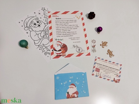 Az árban benne van: keményebb papírra nyomtatott, 1 gyermek nevével ellátott Tanusítvány és névre szóló Mikulás levél + boríték, matrica, színező.