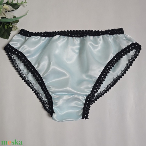 M-es / 40-es Hagyományos fazonú szatén bugyi – világoskék-fekete