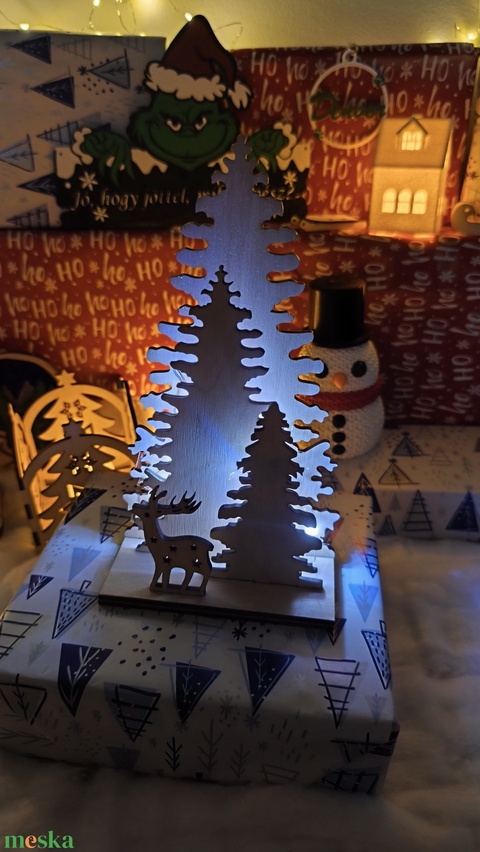 Többrétegű LED-es fa dísz – lézervágott karácsonyi látványdekor