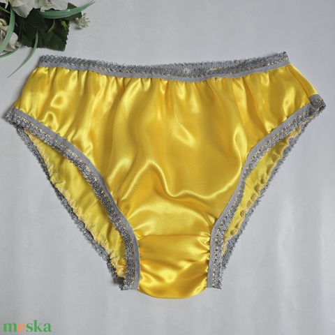 L-es / 46-os Hagyományos fazonú szatén bugyi – citromsárga-szürke