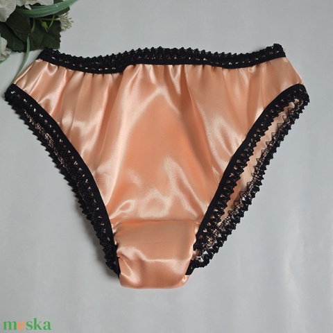 M-es / 40-es Hagyományos fazonú szatén bugyi – barack-fekete