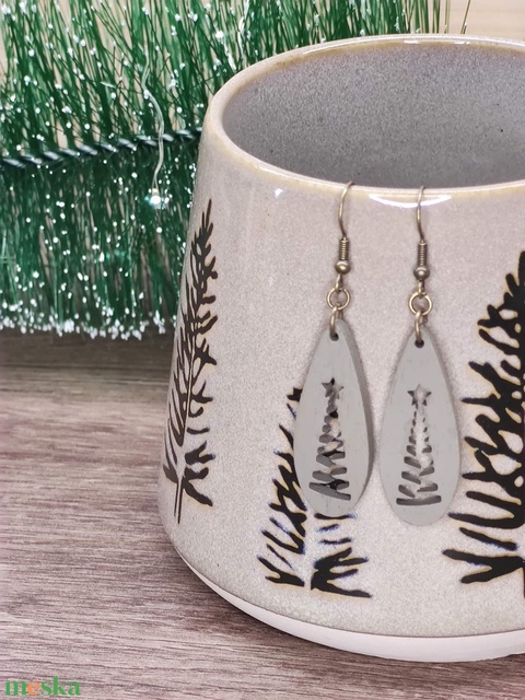 Karácsonyi fülbevaló - fából, karácsonyfa mintával