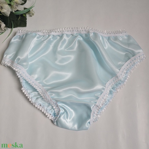XL-es / 48-as Hagyományos fazonú szatén bugyi – világoskék-fehér