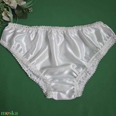 3XL-es / 54-es Hagyományos fazonú szatén bugyi – fehér-fehér