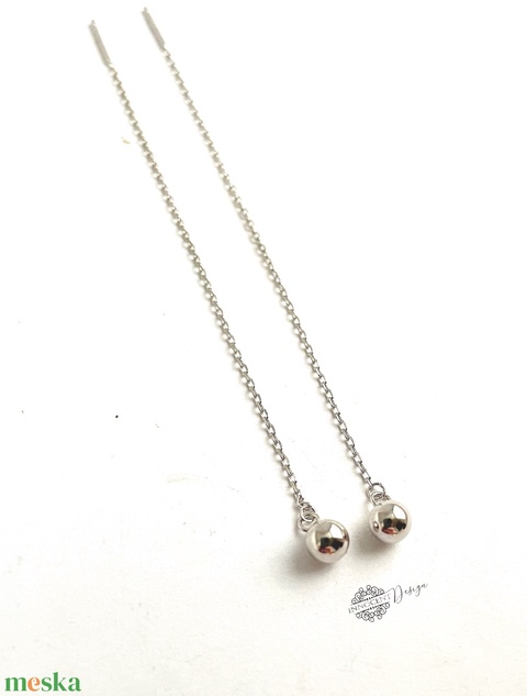925 Ezüst hosszú bedugós fülbevaló golyóval láncon