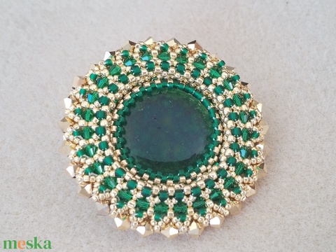 Zöldarany fűzött bross