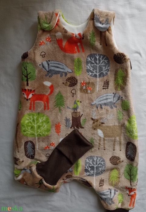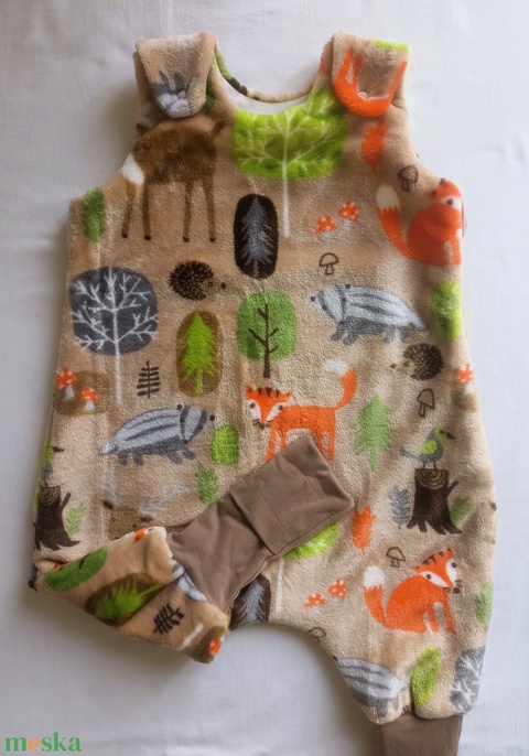74-80-86-os téli tipegő hálózsák wellsoft + bébiplüss 20-21 fokba drapp erdős