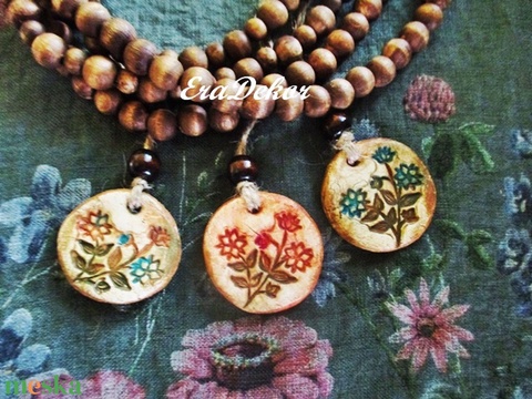 - Anyaga: vízbázisú akrilfestékek, vízbázisú lakk, , zsinór, bőr, gyöngy, kerámia, boho, rusztikus
