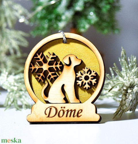 Kutyás fa hógömb karácsonyfa dísz név gravírozással