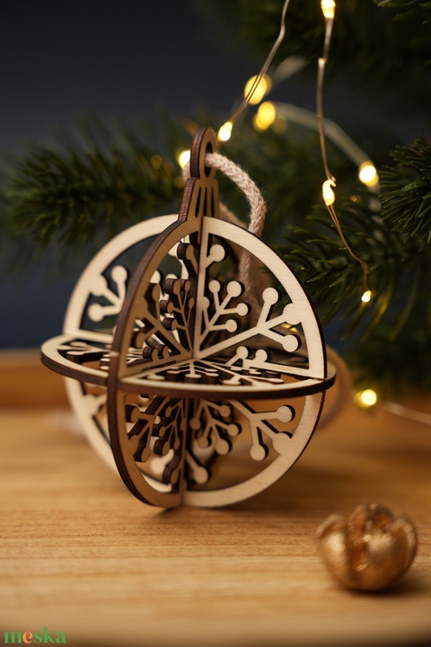 Lézervágott 3D-s egyedi, különleges karácsonyfadísz - gömb (bogyós hópehely)