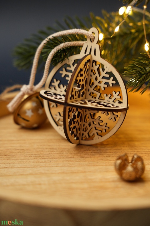 Lézervágott 3D-s egyedi, különleges karácsonyfadísz - gömb (hópehely)