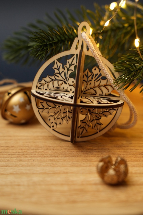 Lézervágott 3D-s egyedi, különleges karácsonyfadísz - gömb (magyal)