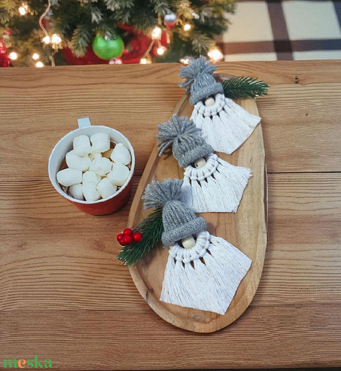 Manó karácsonyfa díszek - ezüst sapka makramé