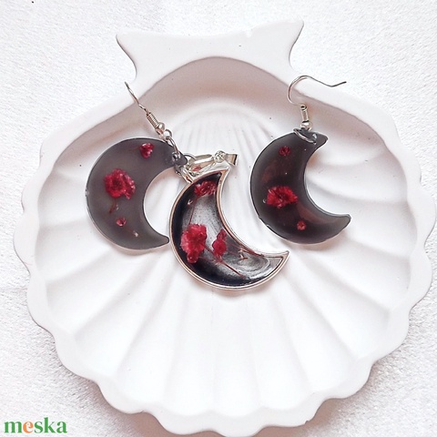 Titokzatos Éjfél Hold - Fekete-vörös gyanta ékszerszett, hold alakú