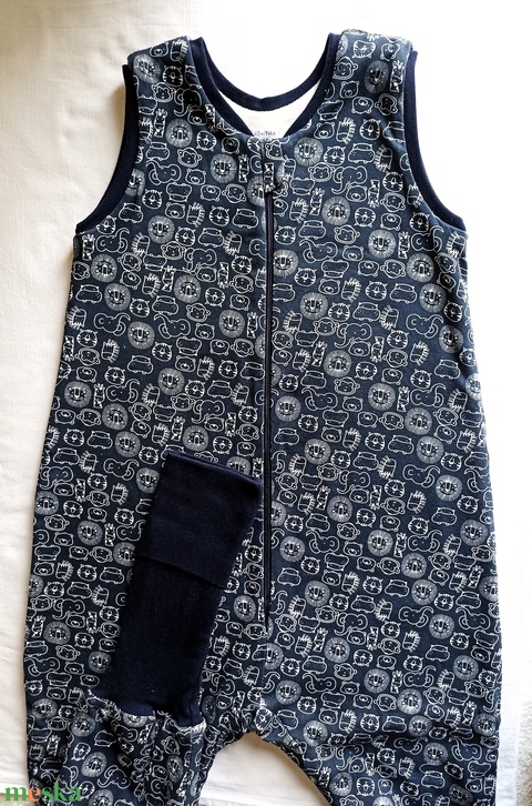 134-140-146-os Őszi tipegő hálózsák átmeneti pamut sötétkék állatos