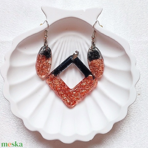 Modern Elegancia - Fekete és rézhatású gyanta geometrikus ékszer szett
