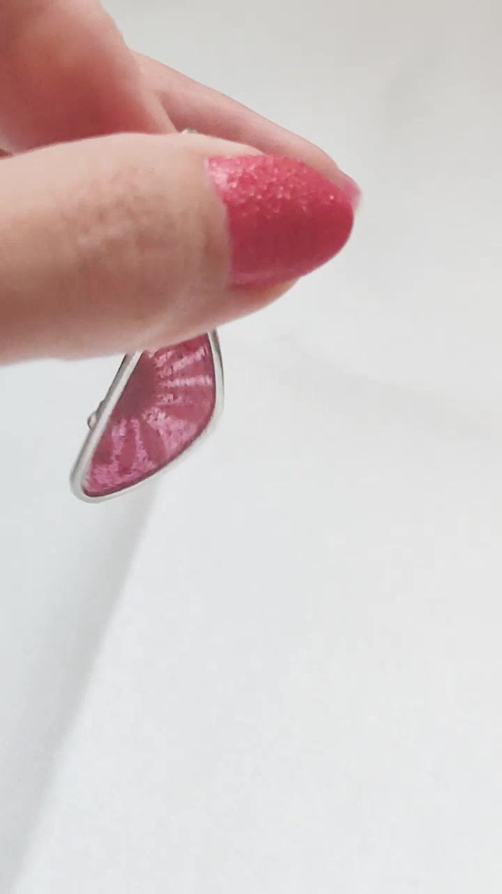 Százszorszép piros alapon lógó fülbevaló csillogó gyantában