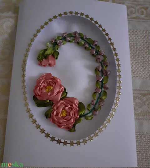 - Anyaga: textil, himzőfonal, szaténszalag, papír, ragasztó, kontúrmatrica