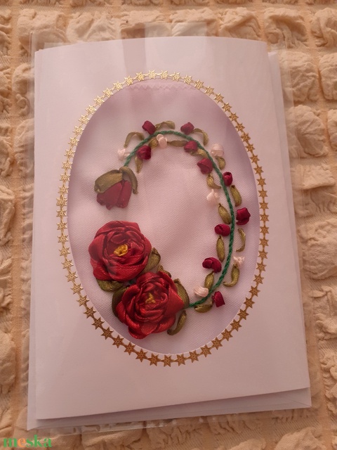 - Anyaga: textil, himzőfonal, szaténszalag, papír, ragasztó, kontúrmatrica
