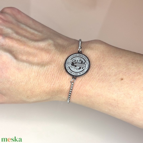 Szent Benedek Medálos Nemesacél Karkötő állítható méretű ajándékdobozban