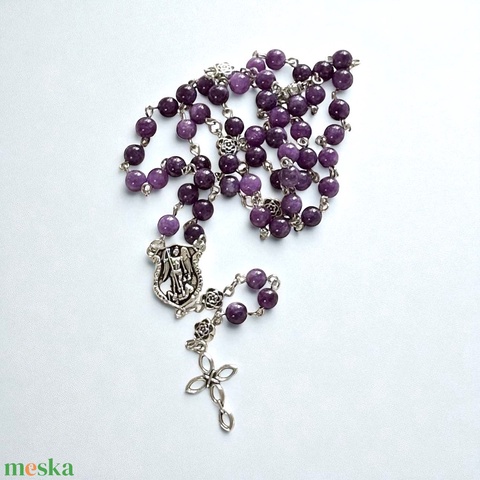 - Anyaga: medál, fém, ásványgyöngy, ametiszt, kereszt