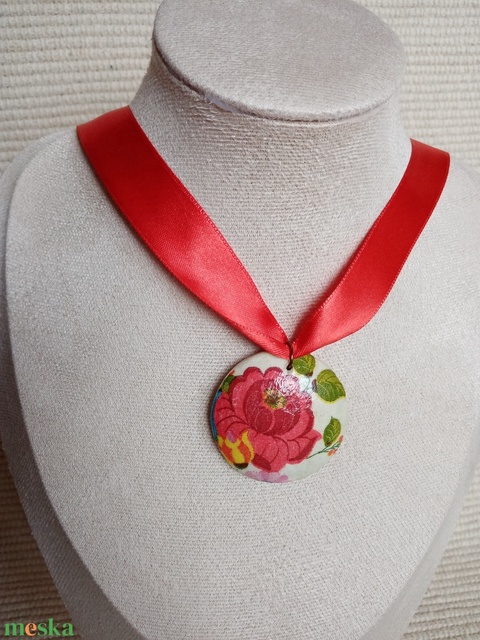 Matyó mintás decoupage nyaklánc,matyó ékszer,folklór textil ékszer,magyaros nyaklánc,Hungarian folk jewellery