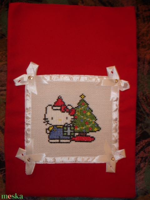 Keresztszemes hímzéssel készült Karácsonyi-Télapó-Mikulás zsák