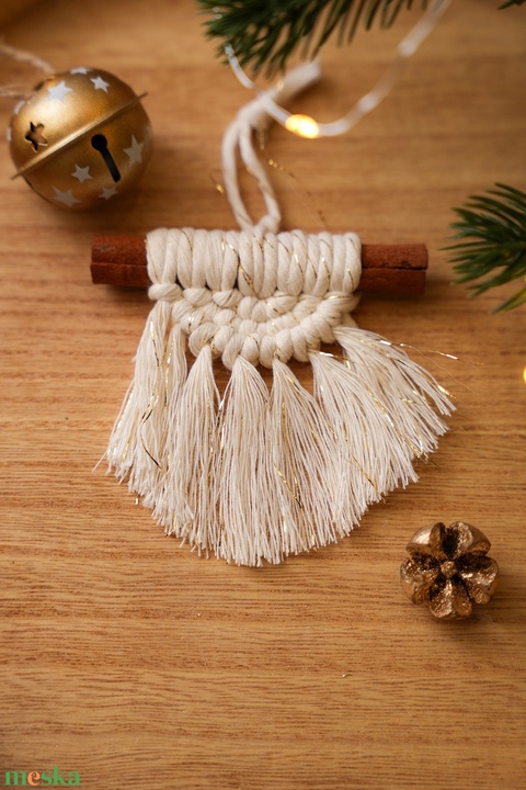 Fahéj alapra/rúdra készített makramé karácsonyfadísz