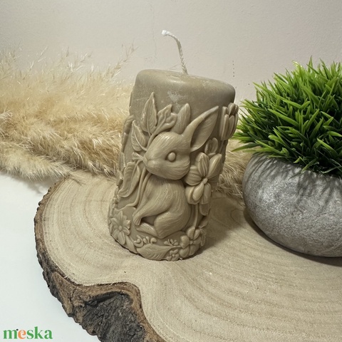 Húsvéti Nyuszis Dekor Henger Gyertya - Barna