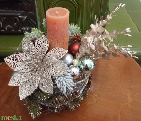 - Anyaga: selyemvirág, tűzőhab, fa tálca, hóemberfigura