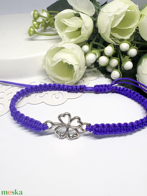 Fonott makramé karkötő lila lóherével
