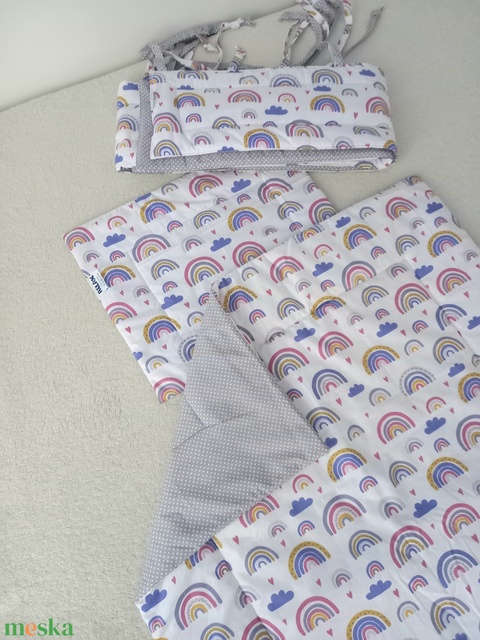 Három részes garnitúra: paplan+párna+rácsvédő /Szivárvány/