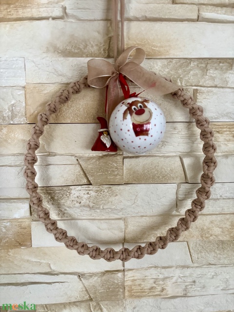 - Anyaga: fa, kerámia mikulás, műanyag gömb, újrahasznosított pólófonal