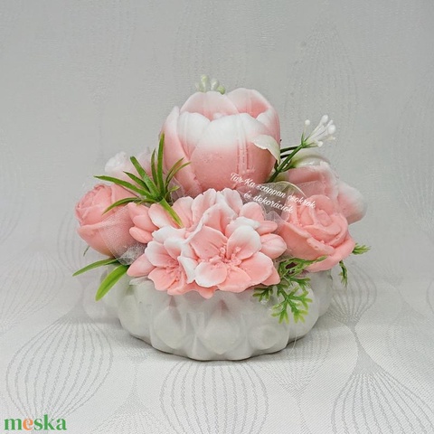 Szappanvirágok kicsi kerek kaspóban