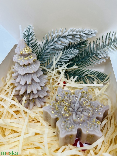 Bézs Karácsonyi Gyertyaszett – Fenyőfa és Hópehely